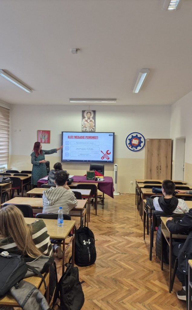 Радионици су присуствовали ученици I, II и III разреда Средње стручне школе у пратњи наставника Душана Бајића и Дејане Петрић. Спроведена активност реализована је у два дијела. У првом дијелу, ученици су упознати са појмом медијске писмености и њеним алатима. Анализом медијских порука, приказано је на који се начин развијају технике убјеђивања. Други дио часа био је посвећен конкретним активностима ученика на откривању лажних вијести, а спроведен је кроз групни рад.